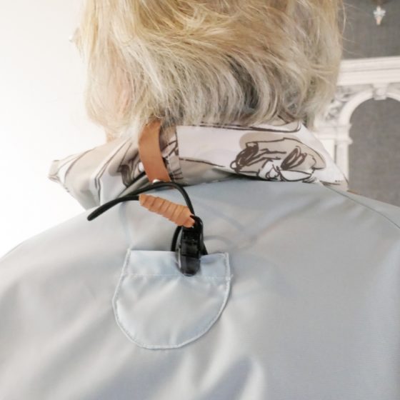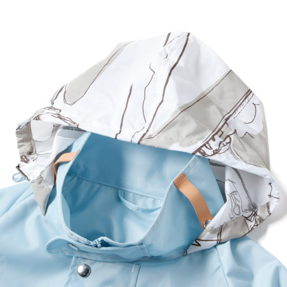 大きなポケットが特徴的なMMプリントブルゾンは、オープンタイプのクラシックカーに適したウエアです。厚手のコットンは撥水効果があり、ウエア両裾部分のジップがついているので、ジップを開けることで、ストレスのないドライブを実現。オシャレなデザインがプリントされたフードを留めるレザーのバンドは、クラシックカーでよく見かける、ラゲッジバッグなどを留めるバンドを彷彿とさせた、車好きの心をくすぐるデザインです。また、背中部分にはキャップが飛ばされないためのお馴染みのクリップもついています。