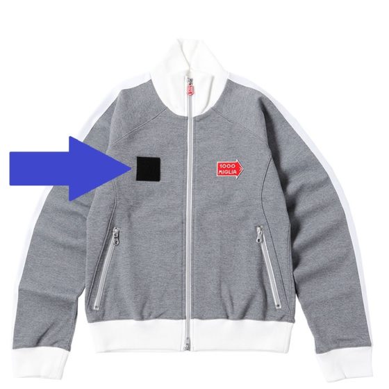 ※注意:下記のラ・フェスタ・ミッレミリアのウエア(矢印部分)に貼りつけるためのワッペンです。