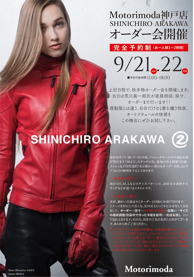 9月21日と22日の2DAYSにてSHINICHIRO ARAKAWAのオーダー会を開催いたします。