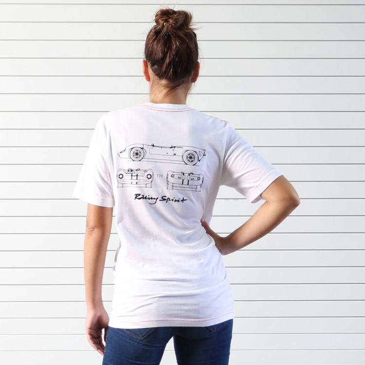 日本でも馴染みの深い、ローラ・カーズの創設者である、エリック・ブロードレイに捧げたTシャツ。バックプリントには、ローラが一躍有名となるきっかけとなった、ローラT70が描かれています。デザイナーとしても有名だったブロードレイは、スポーツプロトタイプカーだけでなく、様々なフォーミュラカテゴリーのマシンをデザイン、モータースポーツ界に功績を残した偉大な人物の一人です。