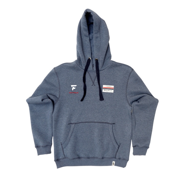 フィッティパルディとRacing Spiritの刺繍ロゴが入った、シンプルなフードパーカー(裏起毛つき)です。厚手の素材感でストレッチの効いたコットン+ポリエステル生地です。