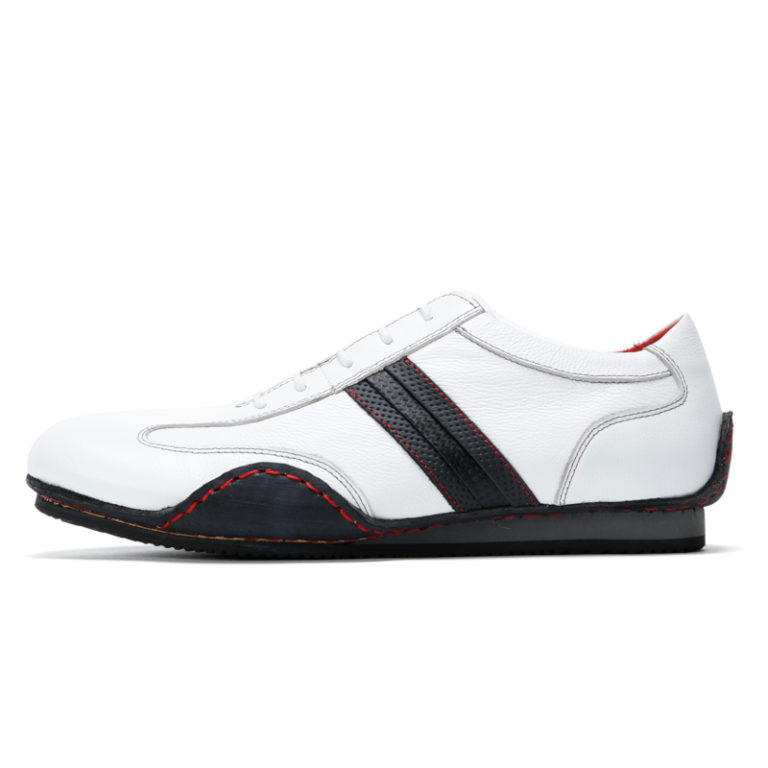 スリージェネレーションズのロングセラーモデル、"three generations 0410"をNeu interesseバージョンにアレンジ。Neu interesseのアイテムに使用されているスタイリッシュなカーボンパターンとのコンビ、レーシングスーツなどに使われる最先端の革素材 「ハイブリッドレザー」を採用。アッパーは、ネイビーのみスエード革を。ホワイトはシボ革を採用し、落ち着いた雰囲気に。レッドは全体に焦がし加工を施し、深みのある色合いに仕上げています。