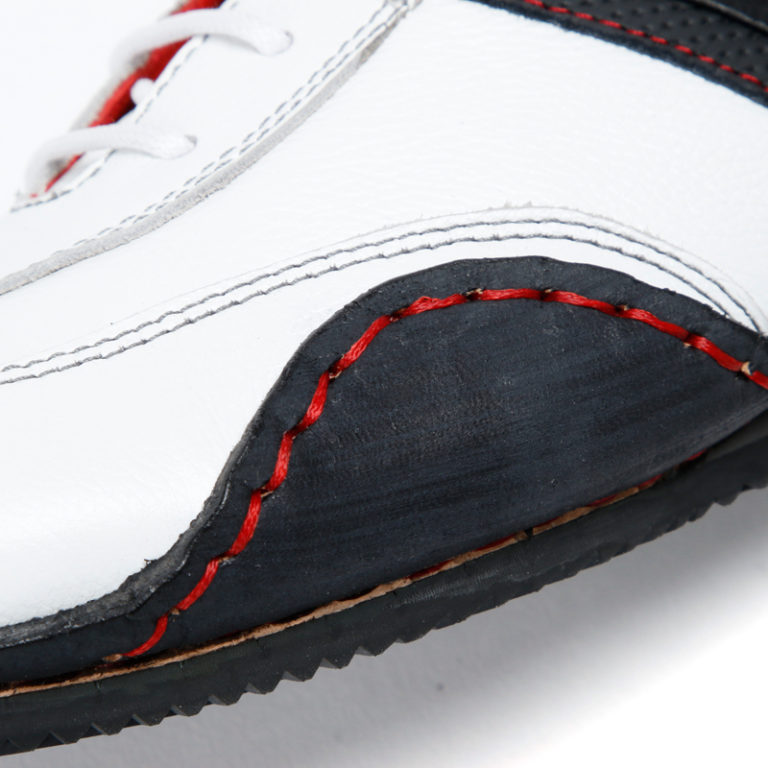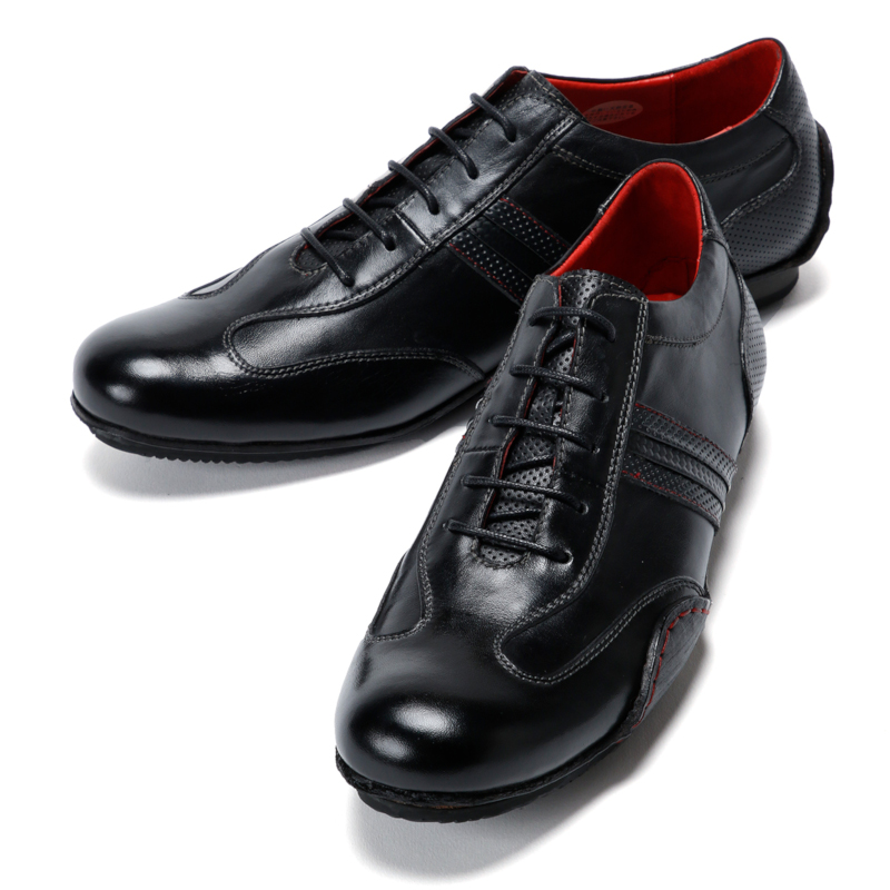 赤いステッチが特徴的。サイドのラインに使用されているカーボンレザーは、ノイインテレッセのシャッテンシリーズに採用されているハイブリッドレザーを使用。