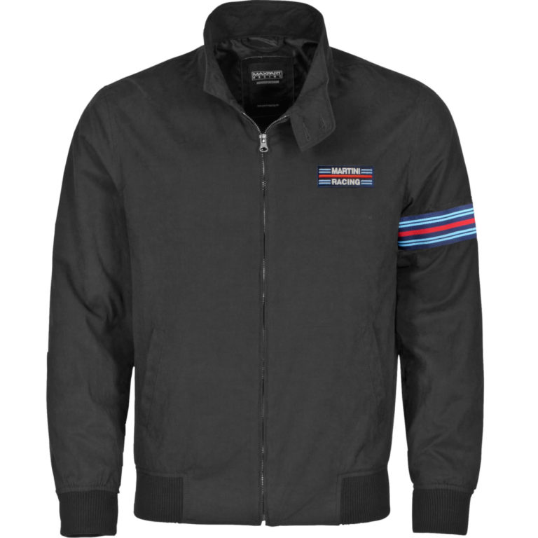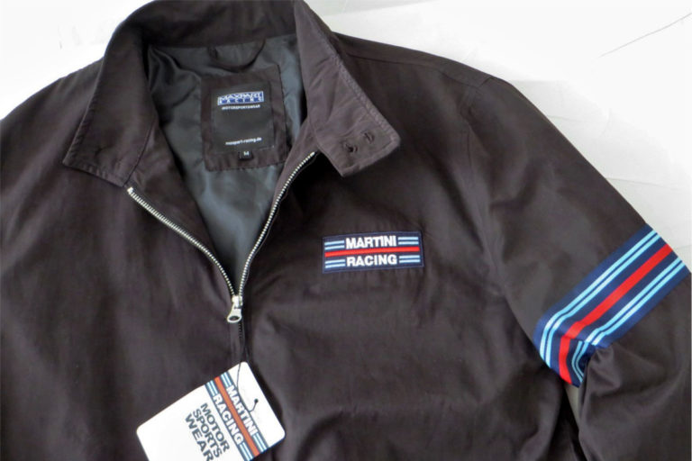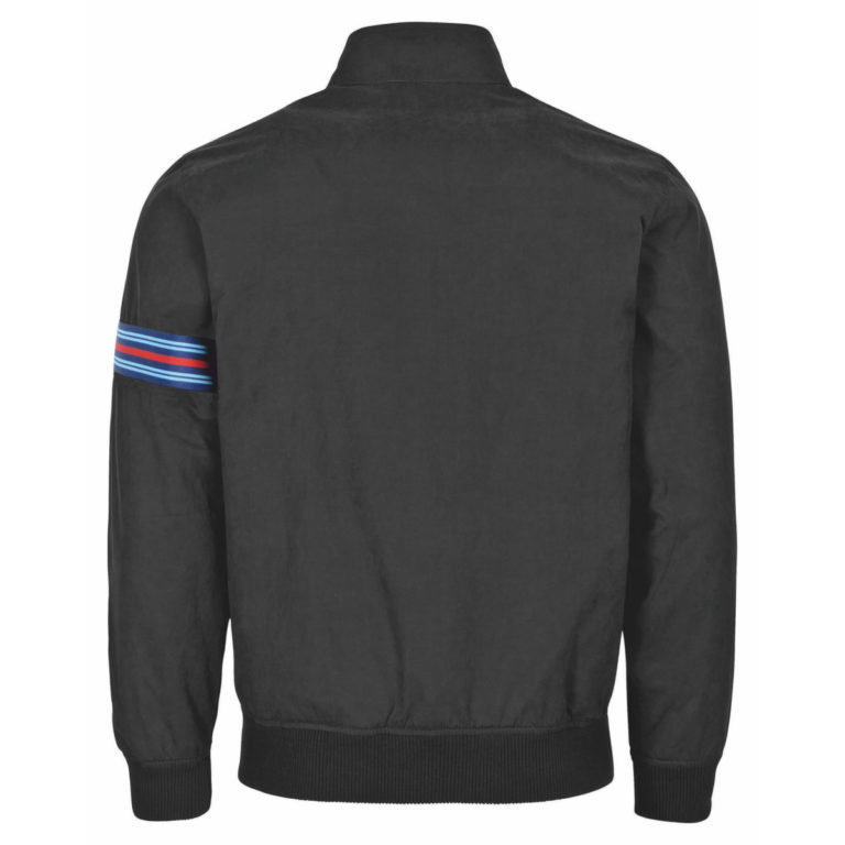 胸元にMARTINI RACINGのロゴ、そして左腕にぐるりとマルティニストライプが特徴的なジャケットです。袖と裾はリブ仕様。