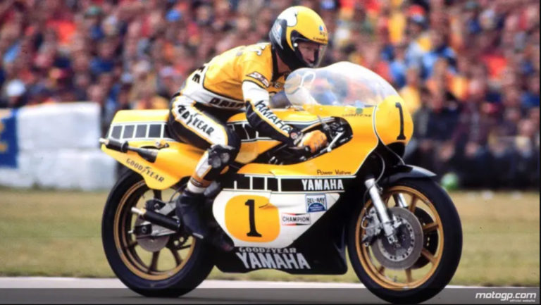 ケニー・ロバーツの活躍により、1978年から3年連続で世界GP500のチャンピオンを獲得したYZR500のカラーリングがモチーフ。キング・ケニーが魅せたライディングスタイルは、その後の2輪のレース界に多大な影響を及ぼしたことで有名です。そしてこのカラーリングは、ヤマハのレース活動50周年の節目として、motoGPの2005年アメリカGP(YZR-M1)で復活。同年バレンティーノ・ロッシが圧倒的な強さでチャンピオンを獲得しました。
