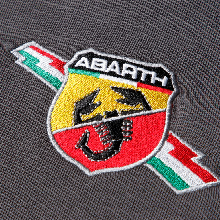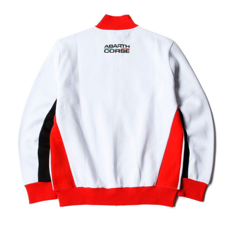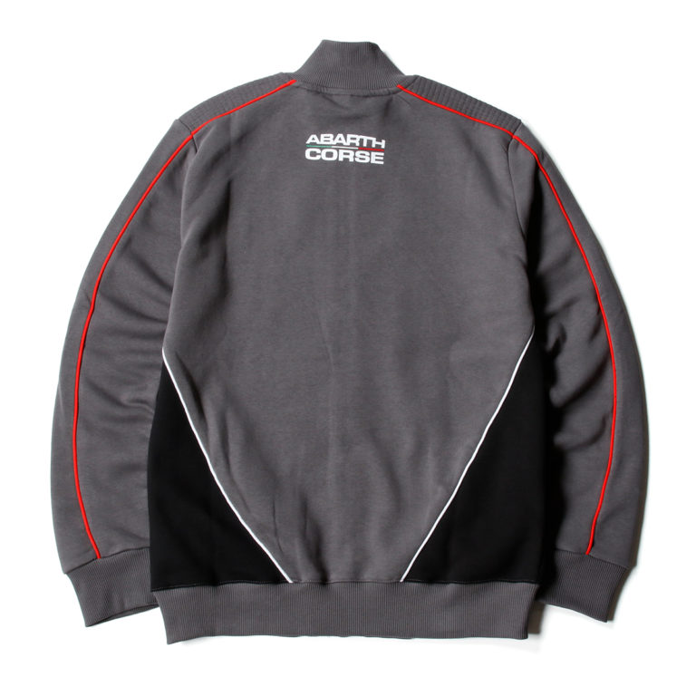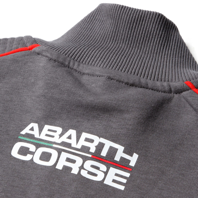 薄手、裏起毛つき、アバルト・コルセのスウェットシャツ。 胸元のロゴは刺繍。カラーは、アバルトの純正色であり、速度記録車のレコードカーのカラーリングがベースとなっている"グリジオ・レコード"をイメージさせるグレーと、ホワイトの2カラー展開。