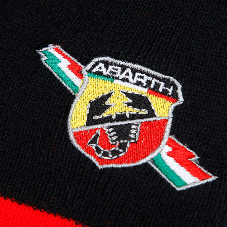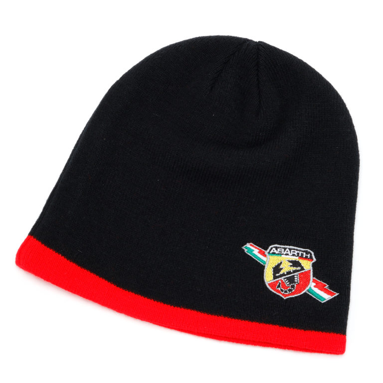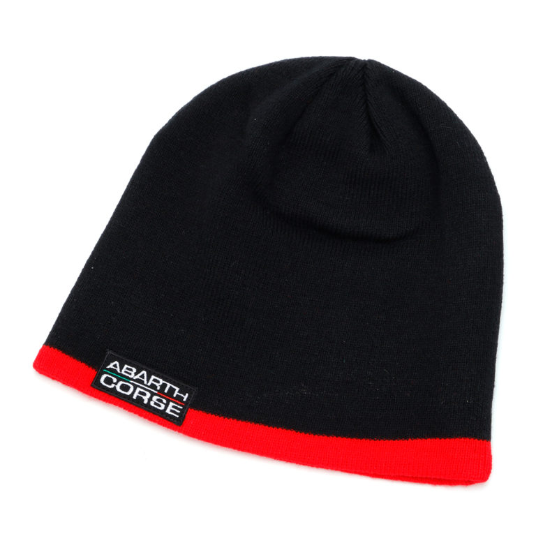 アバルト・コルセのビーニー。前後に刺繍のエンブレムとロゴが入っています。