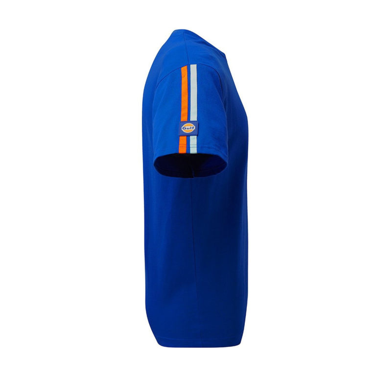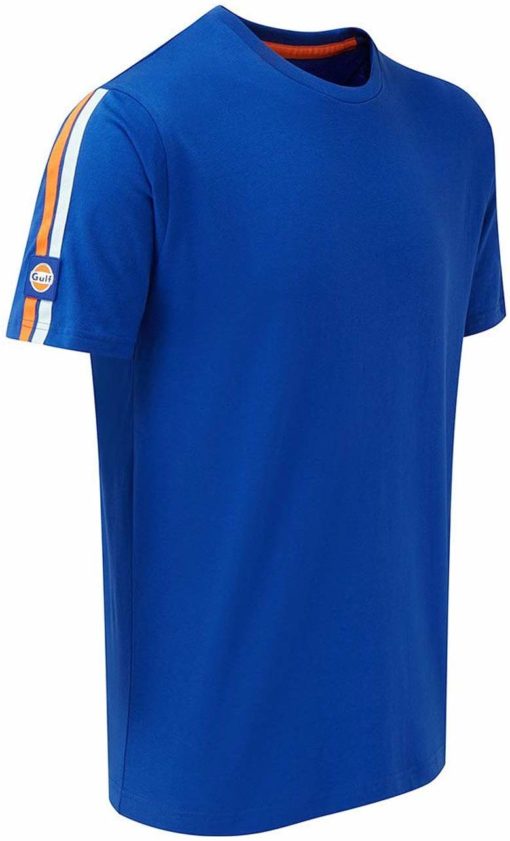 首から袖部分にかけて、オレンジとガルフブルーのWストライプが入った、シンプルなガルフTシャツです。