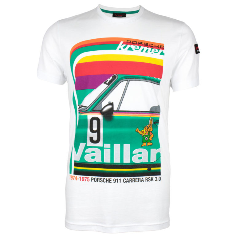 Vaillantカラーのポルシェ・チューナーでお馴染み、クレーマー・ポルシェ911RSRがバックプリントにあしらわれたフードパーカーに加え、Tシャツも同時入荷しています。