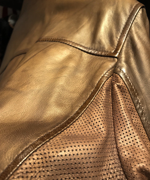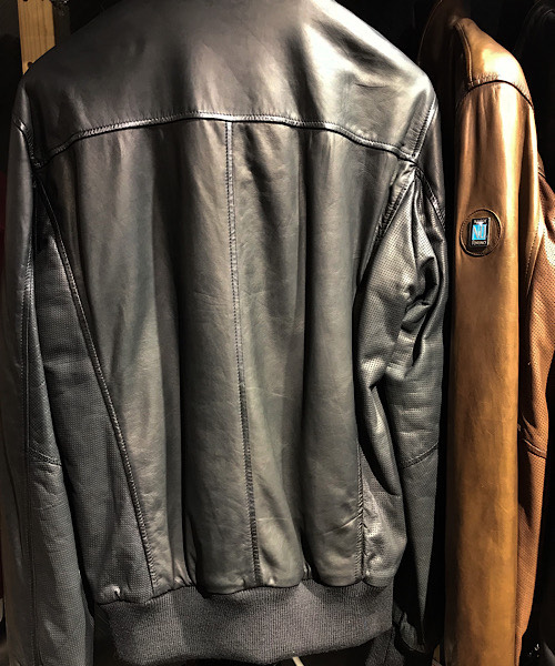 カラーはブラックとブラウンの2色展開。タンニンなめしの羊革を使用しており、非常に柔らかく、使い込むほど身体に馴染みますので、革の風合い度をお楽しみいただけるレザージャケットとなっております。左の二の腕部分にNARDIのエンブレムが入ったシンプルなデザインで、袖と裾にリブがついているので、風が入ってくることもありません。