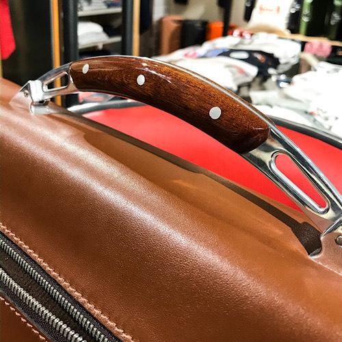 Kallistaステアリングをモチーフにデザインされたウッドのグリップハンドルを採用。スムーズレザーとパンチングレザーとの組み合わせにより、スタイリッシュな感度も高めています。ケースのフロントに映える尾錠もイタリアの職人が手がけた美しい尾錠を使用しています。厳しい品質検査を通った製品のみNDのメタルエンブレムが与えられています。