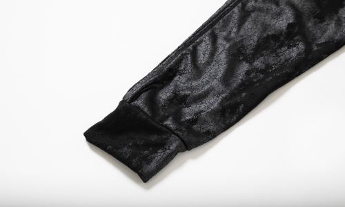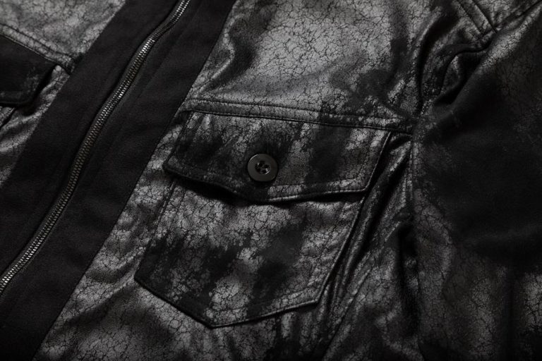 ヒビ割れ(クラック)加工プリント の ポリエステル素材を使用 しているのでヴィンテージな風合いがありながら、 伸縮性があり柔軟でしっとりとした肌触りが特徴