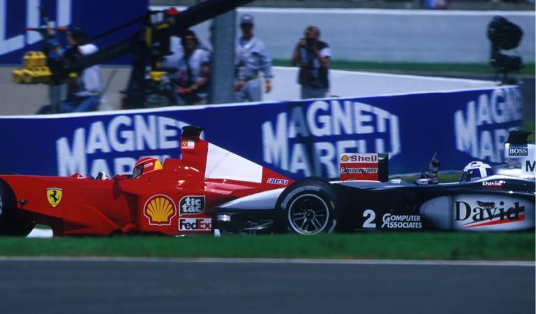 マネキンの中指が立っているのは、2000年フランスGPにおけるシューマッハとの一件からきています。