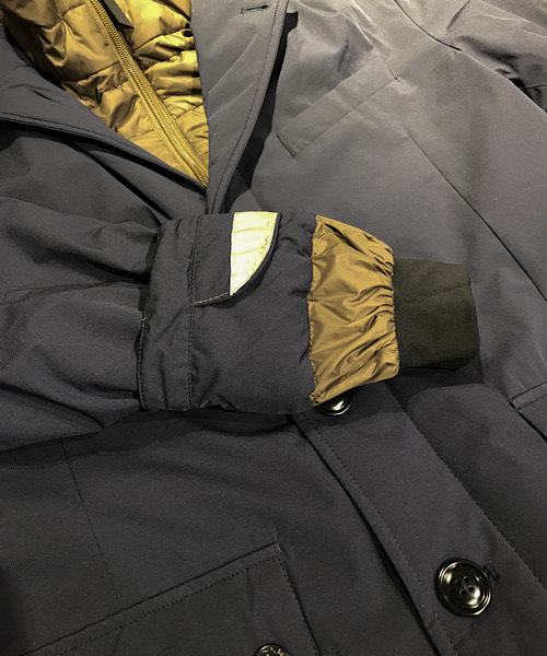 首元のライニングは着脱式となっており外気温に応じて調整が可能です。