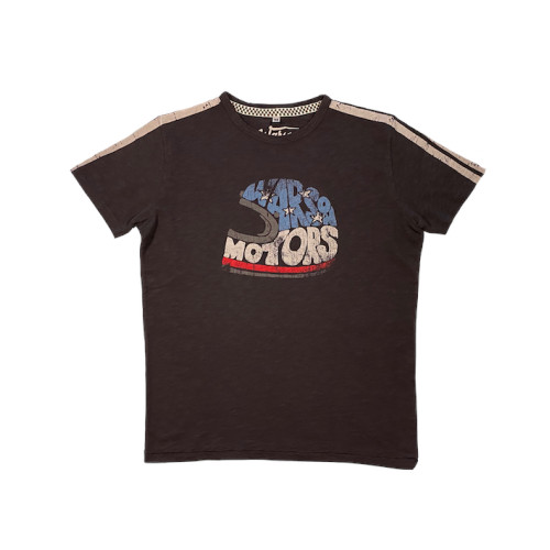 1969年F1イギリスGPがモチーフとなったTシャツ。サークルの形に模られたタータンチェック調の柄は、このレースの勝者であるジャッキー・スチュワートのシンボルカラーでもあります。当時、マトラ・フォードをドライブしていたスチュワートは、このレースで全車をラップ遅れにしてしまうほどの圧倒的な強さで勝利し、この年のF1ワールドチャンピオンにも輝いています。