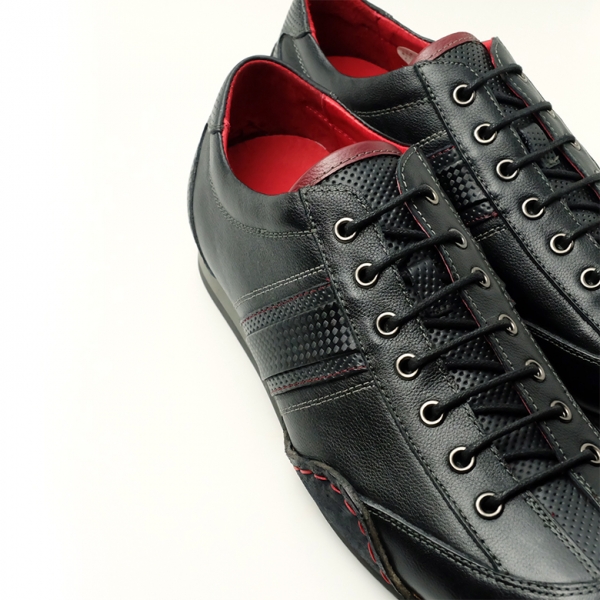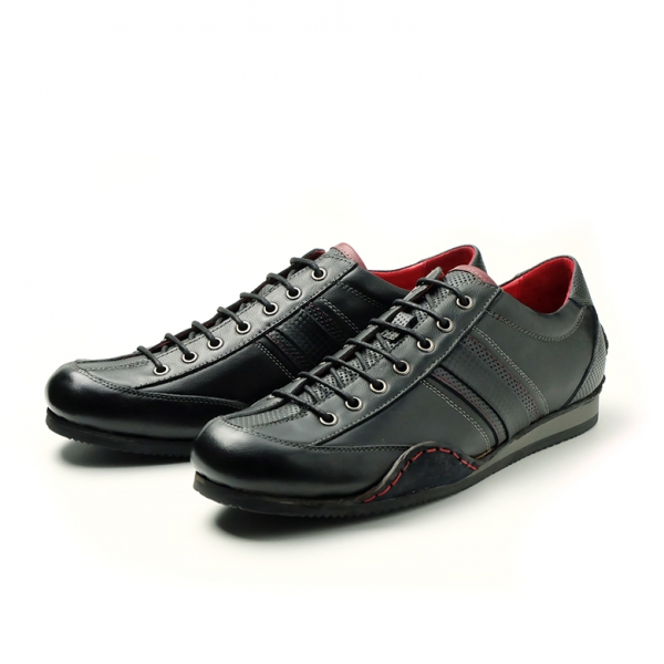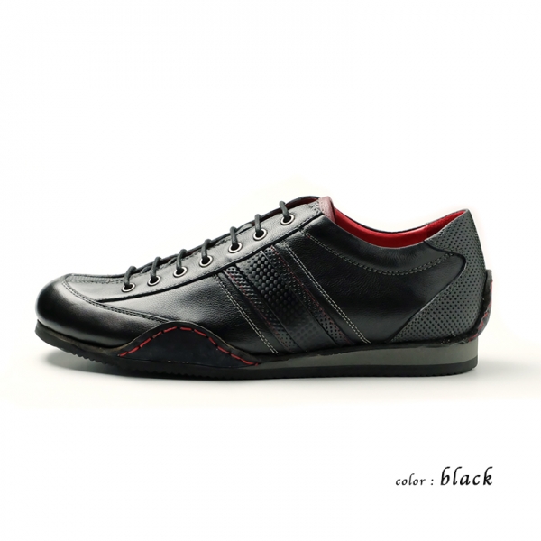 スニーカーのような雰囲気を持つ0412モデルは、外羽根タイプで、足幅にも余裕があり、ゆったりとした履き心地も魅力。Neu interesseの財布を連想させる、赤をアクセントにした、ステッチ、アグレット、ライニングは、上品かつ大人のモダンスタイルなテイストな仕上がり。 ノーズ(靴の先端)は少し長め、スマートなシルエット、巻き上げた革ソールとのコンビネーション。履くとトゥ(先)が少し上がり、綺麗なフォームに仕上がっています。縫い付けは1足1足職人による手縫い仕上げ。アッパーのスマートな顔と手縫いのステッチや天然皮革の素材感がカジュアルな雰囲気をプラスし、バランスの良さがウリ。