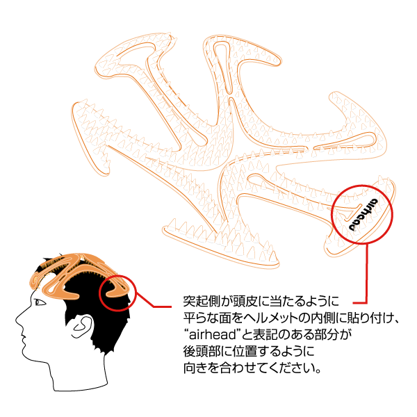 ヘルメットと頭皮の間に「スキマ」を作ることで空気の流れができ、熱がこもるのを防ぐ効果があります。