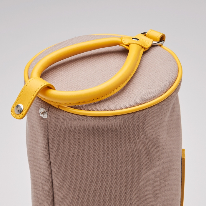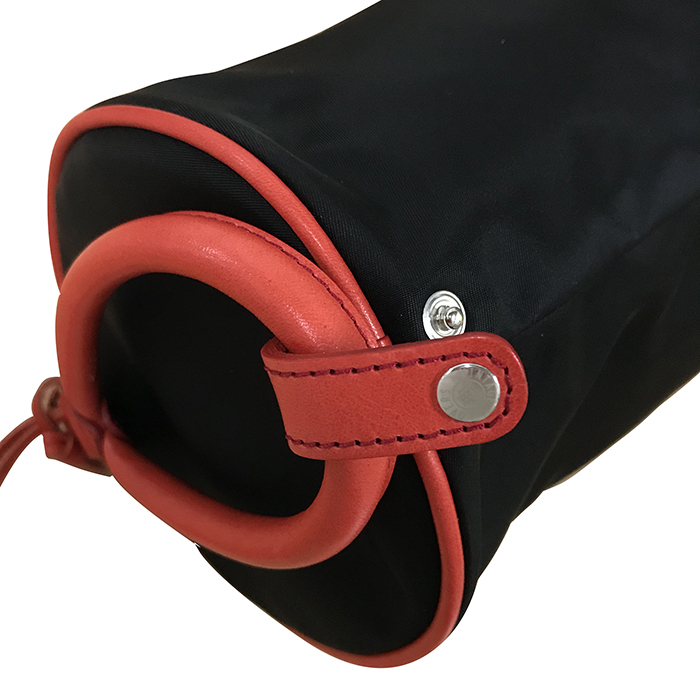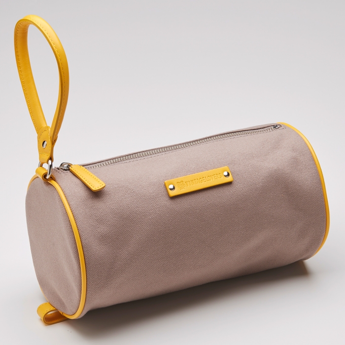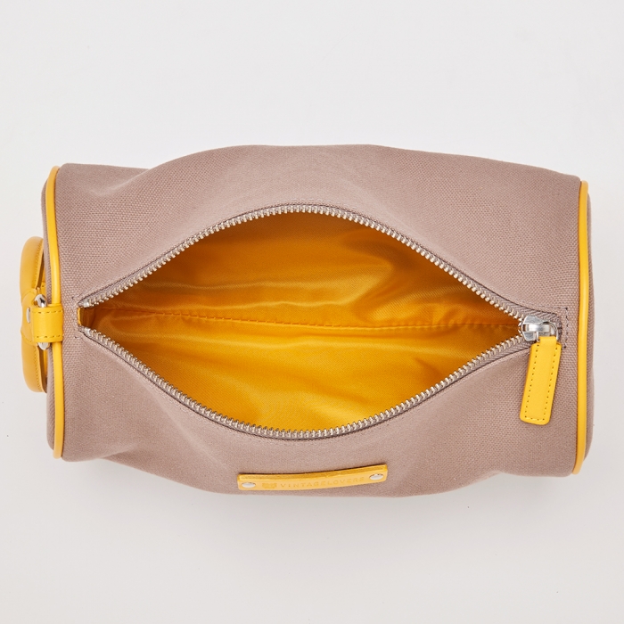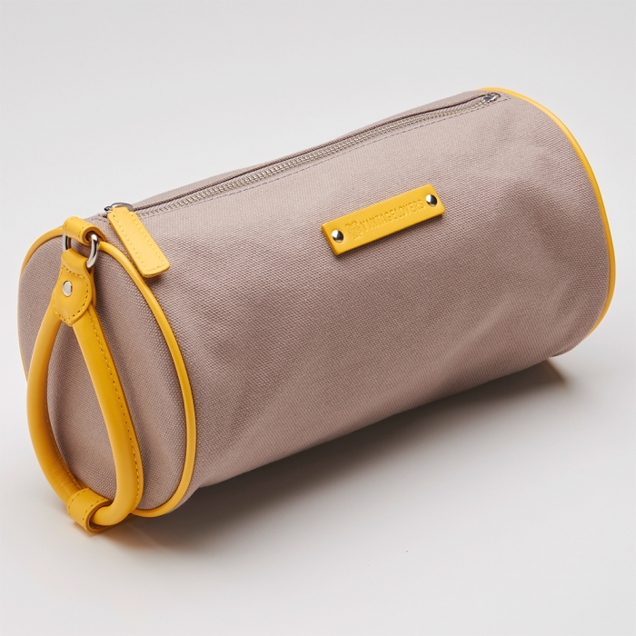 上記でご紹介した「ピサ ポーチ」のコットン生地バージョン。こちらも、持ち手の輪っかの部分は、スナップボタンを外すと、輪っかだけが取り外せるタイプ。片手で持ち運びができる、ジャストフィットなサイズです