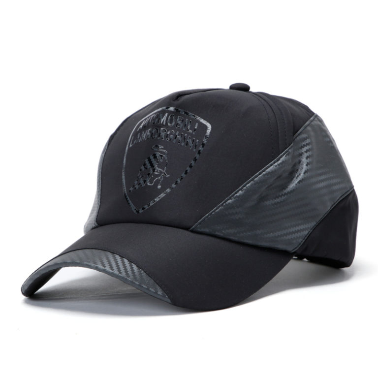 コットン地とカーボン柄による、ツートンカラーのベースボールキャップ。ランボルギーニのエンブレムとブリムの先端、両サイドから後頭部にかけてのカーボンプリントラインがそれぞれ入っています。