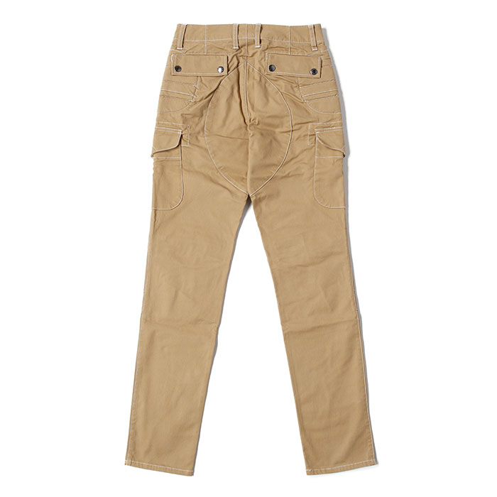 採用しているカーゴポケットは、フラップ付きマチ無しポケットでスッキリとしたシルエット。細身なシルエットながら、ストレッチコットンで動き易く足が奇麗に見えるシルエットも魅力の一つです。