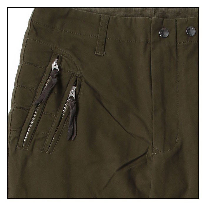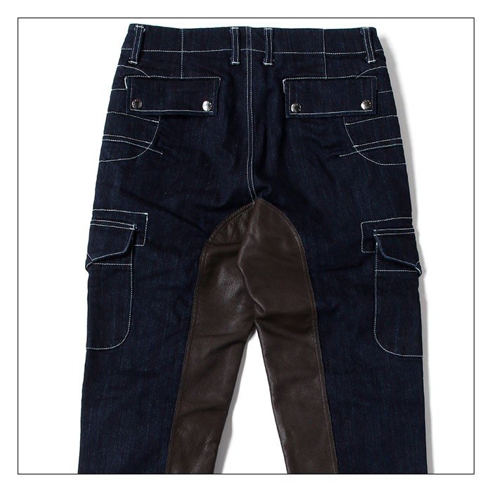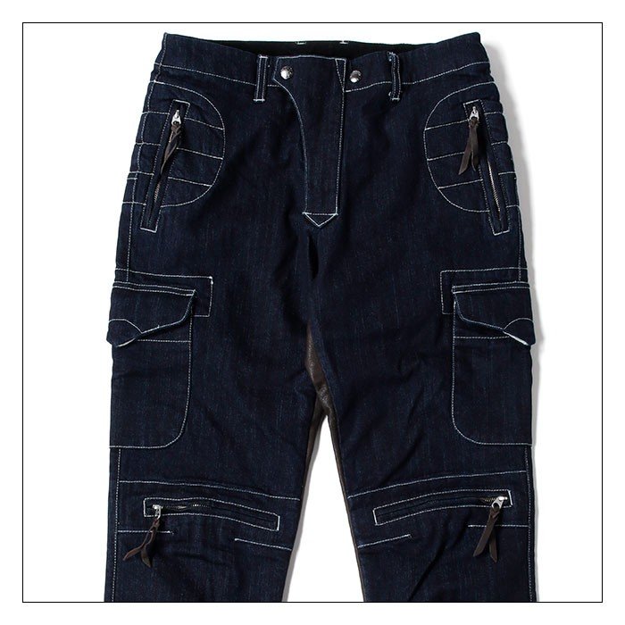 シルエットに響かないように付けられマチの無いカーゴポケットのボタンは、車体への干渉を考慮して比翼ボタン仕様になっている為、タンクに擦ってしまっても傷を付ける心配はありません。