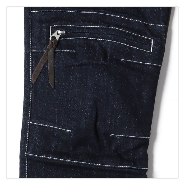 内股から膝にかけて牛革のヒートガードを採用し、エンジン・エキパイからの熱対策を施しています。レザーは牛革(ウォッシャブルレザー)を採用しているのでご家庭で洗濯を行うことが出来ます。