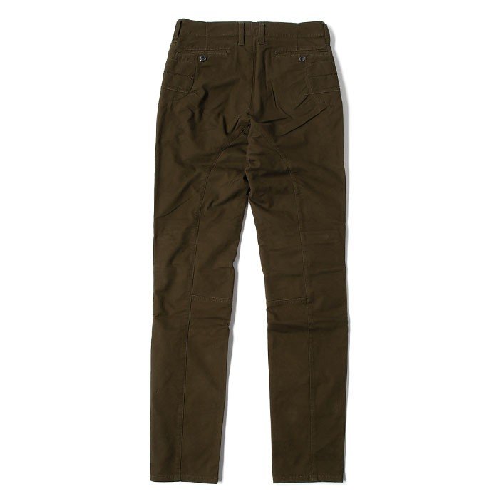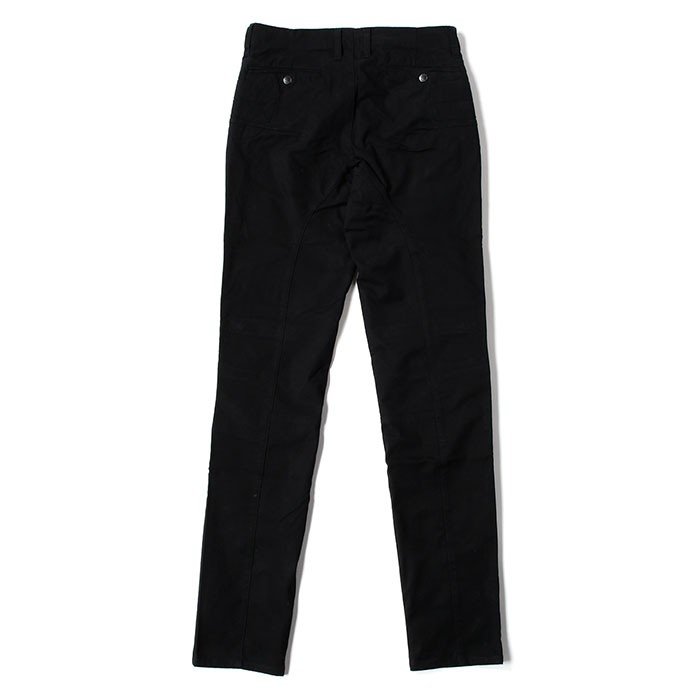 バイクへの乗り降りが容易に行えるように、クライミングパンツなどで使われる、『股のハギを無くした立体裁断』を採用しながらもシルエットには影響が出ない作りです。