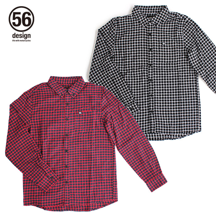 左胸の56designのピスネームが特徴です。このシャツを着て、バイク好きの輪を広げましょう!