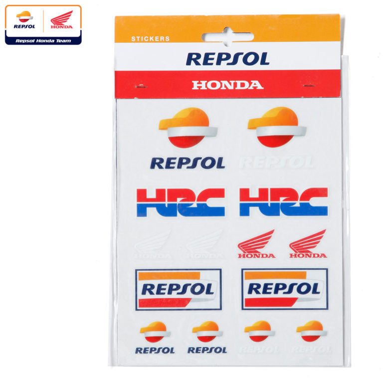 REPSOL、HONDA、HRCロゴのアソートステッカー。車体や身近な小物をステッカーチューンにどうぞ。