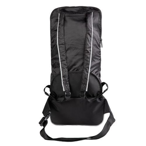 肩ベルトやポーチの下部、ブランドロゴはリフレクターになっているので、夜間でも視認性を確保し安全性にも配慮されております。ベースがウェストポーチなのでリュックとして使用した際にもウエスト部分が腰ベルトとなるので走行中のバタつきも少なく体にフィットしたつくりとなっております。