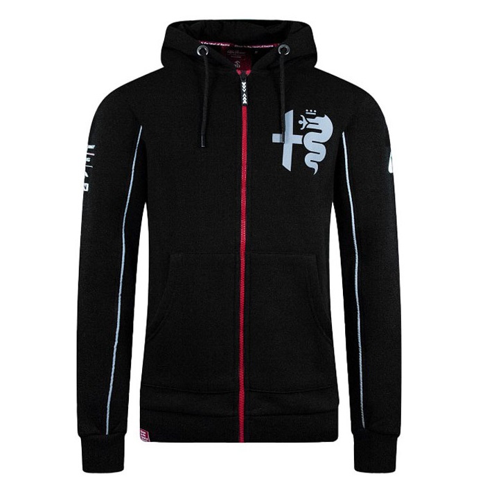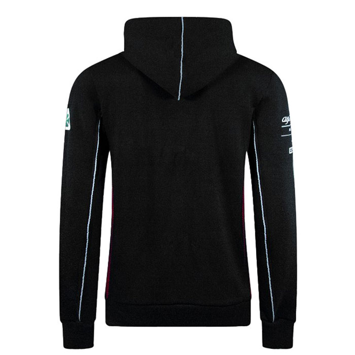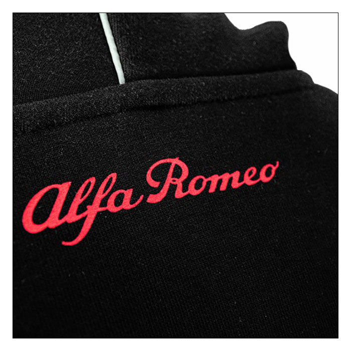 左胸にアルファロメオのシルバーロゴと、赤いセンタージップがアクセントとなっており、右腕にパートナーコレクションのロゴ、左腕にクワドリフォリオのマークがそれぞれ備わります。