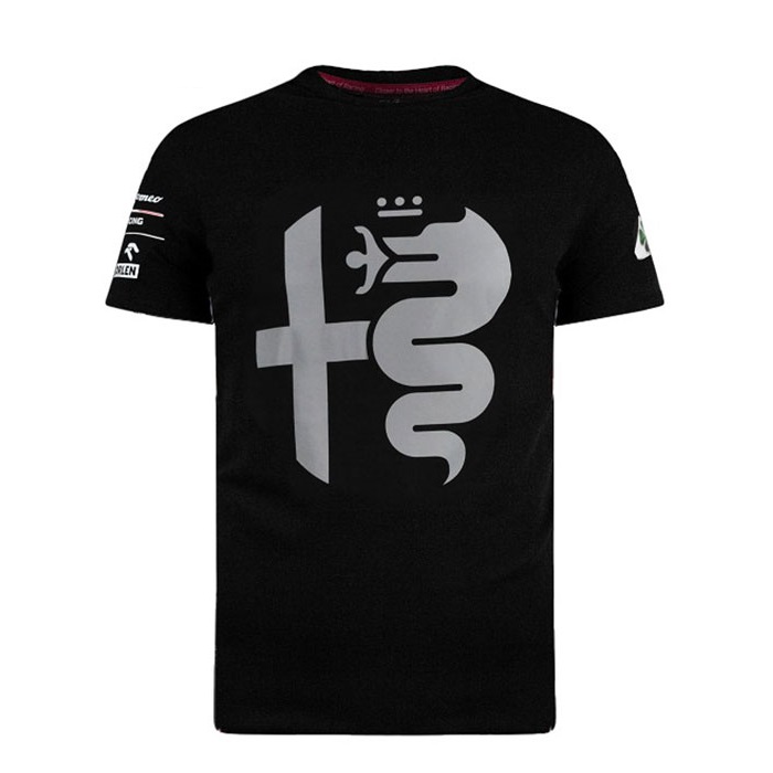Tシャツ正面にアルファロメオのシルバーロゴがプリントされた、パートナーコレクションのオフィシャルTシャツ。