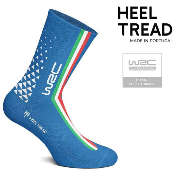 そして今回ご紹介する商品は、昨年あたりからオフィシャル商品としてWRCと手を組むようになった、あのHEEL TREADとのコラボレーションソックスを今年も引き続きリリース。今年は開催国別のカラーをまとったナショナルソックスにWRCのオフィシャルロゴが刺繍されたオリジナル商品です。伝統のモンテカルロやサンレモ(イタリア)、スウェーデン、RACラリーなどなど、WRCのロゴとナショナルカラーを見ると、思わずふと頭に浮かびあがる印象深いレースがあるのではないのでしょうか。