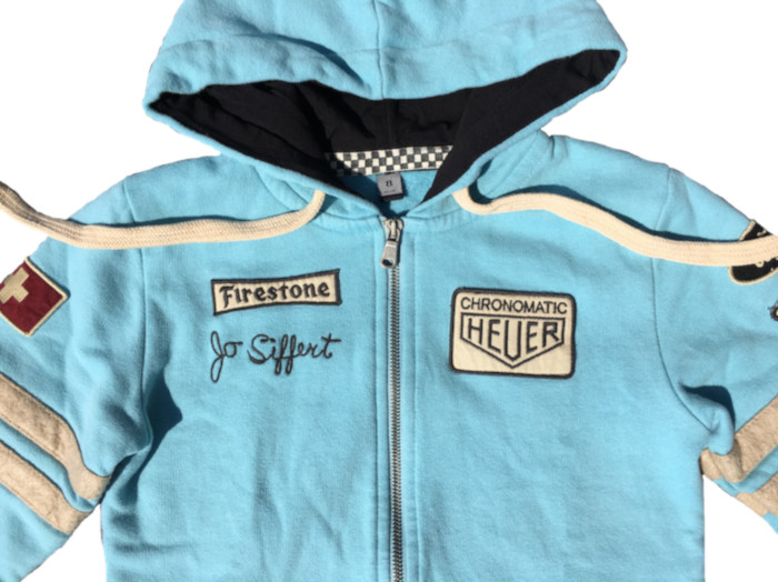 ミッレミリアと肩を並べるくらいに知名度の高い公道レース「タルガフローリオ」。ジョー・シフェールは1970年タルガフローリオでポルシェ908/3を駆り見事優勝を飾っています。そのポルシェ908をオマージュしたキッズ用のフーディー。モータースポーツ好きなお子様の英才教育に一着どうぞ。