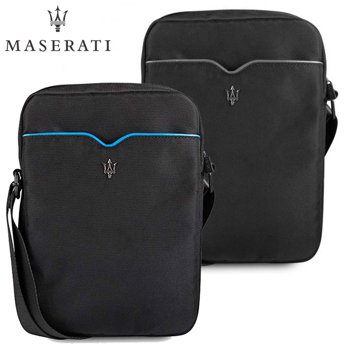 MASERATI純正のタブレットバッグ。マセラティのトライデントロゴが中央にあしらわれたシンプルなデザイン。10インチサイズのタブレットが収納可能です。