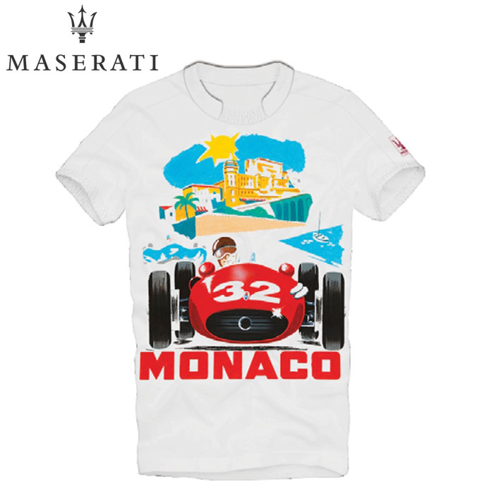 MASERATI純正のオフィシャルクラシケTシャツ。Tシャツの中央には、1957年にチャンピオンを獲得した、J・マヌエル・ファンジオが操る、マセラティ250Fがプリント。このレースでファンジオは勝利しています。