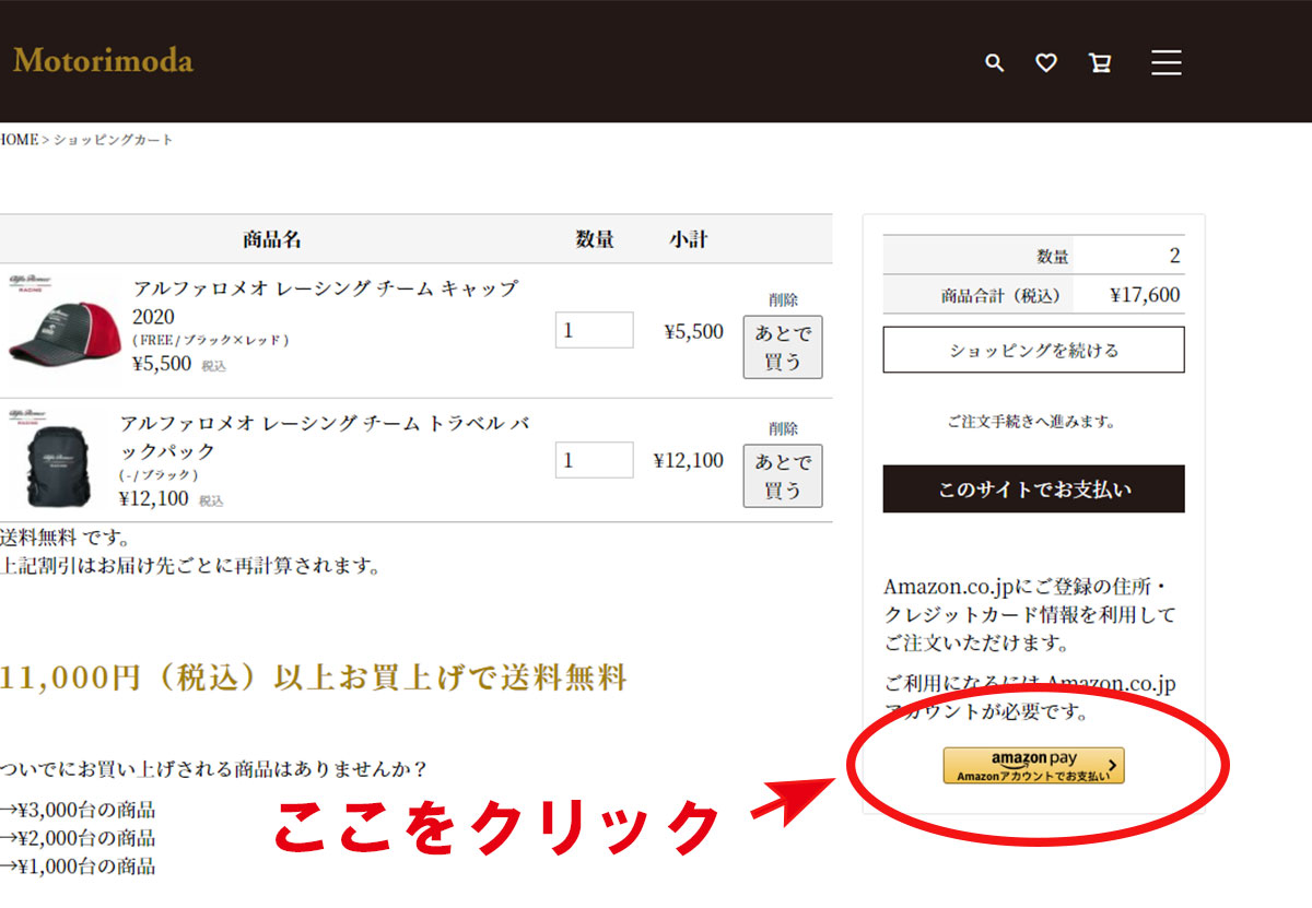 このたび、Motorimoda公式オンラインショップでは、Amazon Payを導入しました。