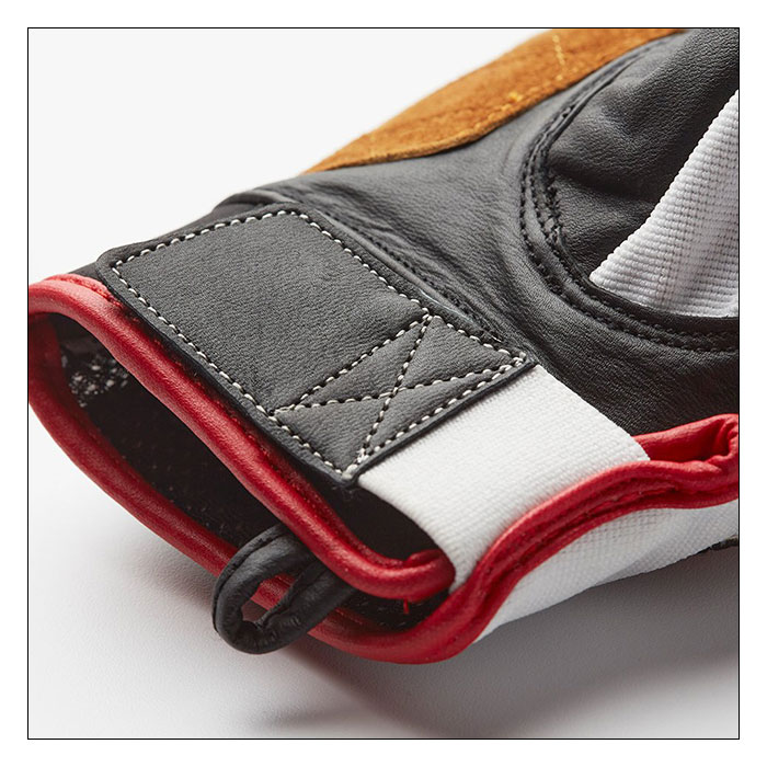 高品質レザーとテクニカルファブリックをミックスしたショートタイプのサマーグローブです。