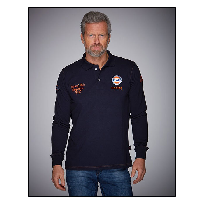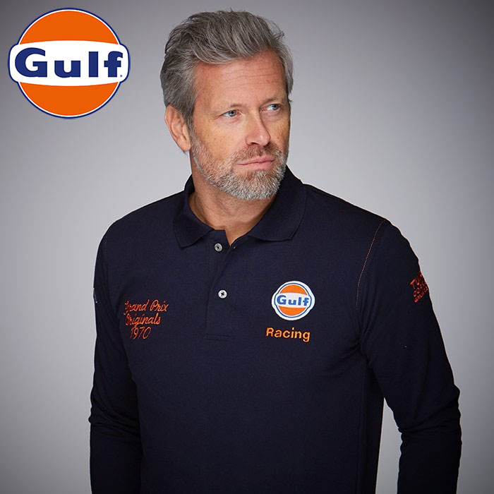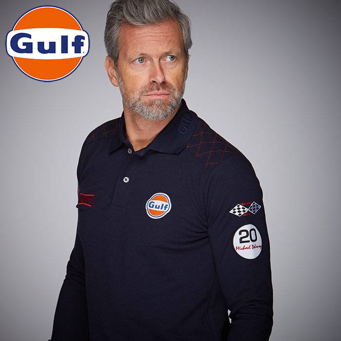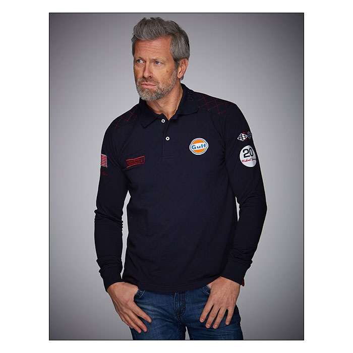 映画「栄光のルマン」をオマージュした、長袖タイプのガルフポロ。