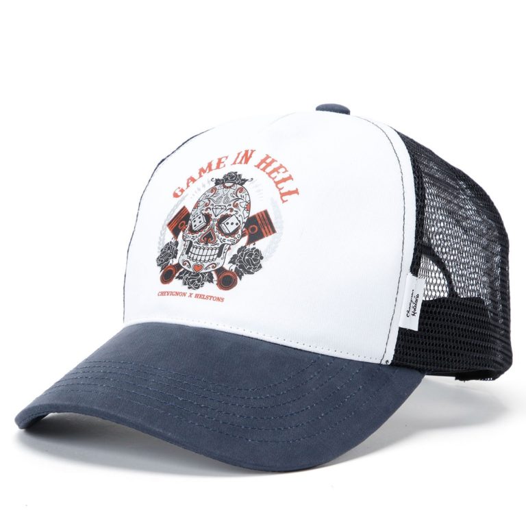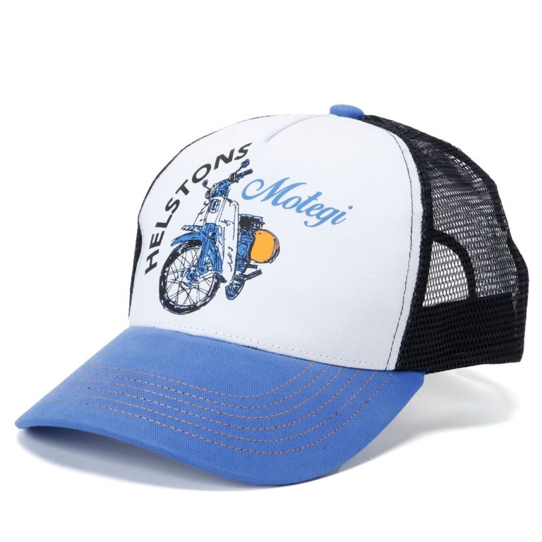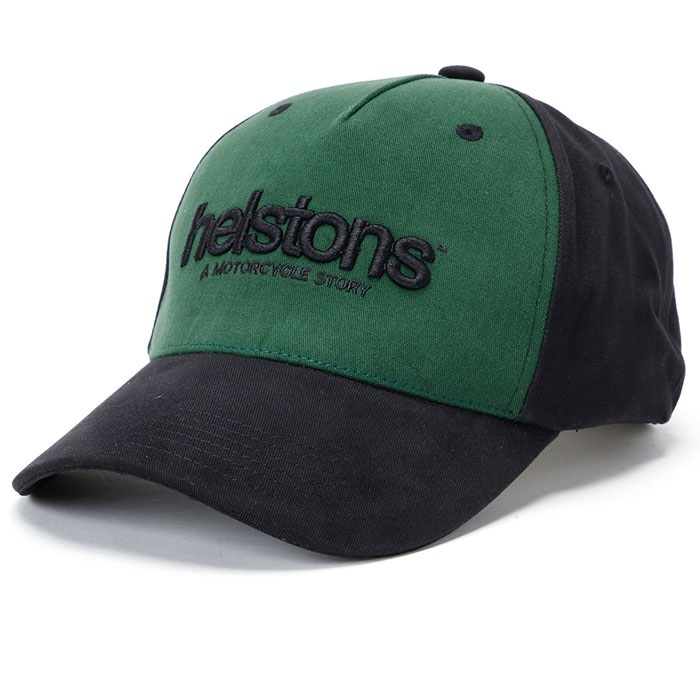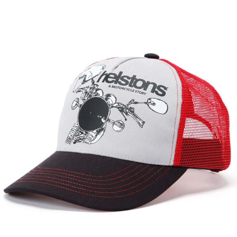 helstonsのロゴにバイクとヘルメットのイラストが前面にプリントされたオリジナルキャップです。