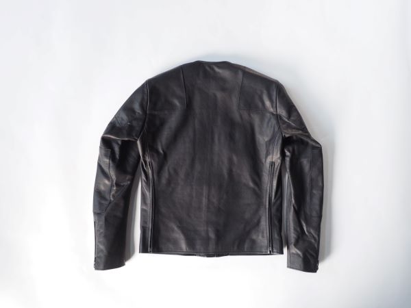 既存のMJシリーズをブラッシュアップさせたMJRシリーズ。厚さ1.1~1.2mm前後のステアハイド採用と言う部分は変わらず、鞣しのレシピをアレンジすることで、ひと味もふた味も変わった仕上がりとなっています。このMJR-1はヴィンテージレーシングスーツを現代風にアレンジしたノーカラーシングルライダース。腰ポケットを外すことでシンプルな見た目だけでなく軽くて動きやすい着心地が実現されています。レザーの中でも最も高品質なフルグレインレザーを使用しており、シェービングされていない革の本来の表情が愉しめます。大量生産品とは違い、一着一着が微妙に表情の異なる唯一無二の逸品。着用を重ねることで身体に最高にフィットし、まさに貴方だけの一着に仕上がります。