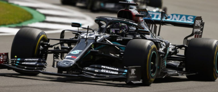 2020年のF1「70周年記念グランプリ」として開催された、イギリス・シルバーストン・サーキットで勝利した、ルイス・ハミルトンのウィナー記念ポスター。終始レースをリードしてこのまま独走かと思われたハミルトンでしたが、ファイナルラップに左フロントタイヤのスローパンクチャーからタイヤがバーストを起こしてしまい、半周以上スロー走行を強いられることになりましたが、保っていたリードタイムのおかげで後方から迫るフェルスタッペンを振り切ってトップでフィニッシュ。チェッカー後はタイヤが完全にダメになり、あともう1周あれば、ハミルトンの勝利はなかったでしょう。劇的な形で勝利を収めたハミルトンは、ホームグランプリとなる地元イギリスで2年連続制覇となりました。