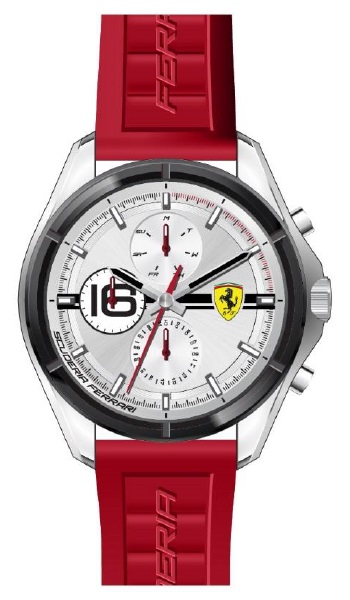 スクーデリア・フェラーリのドライバー、シャルル・ルクレールをイメージしたデザイン。スモールセコンドのひとつに彼のゼッケン16がデザイン、文字盤中央にはフェラーリ458スペチアーレをイメージしたストライプ。シリコンストラップには、フェラーリのロゴと、市販車のレザーバケットシートなどに採用されるデザインを採用。レッドとホワイトでルクレールの母国のモナコ国旗をイメージしつつ、ルーキードライバーらしい、生き生きとしたデザインにまとめられた真紅の時計です。