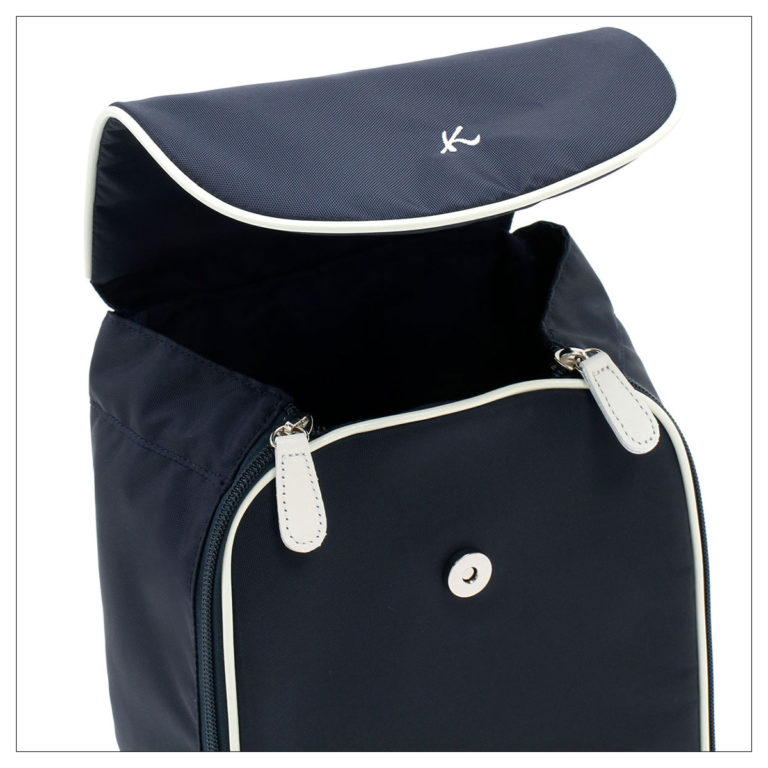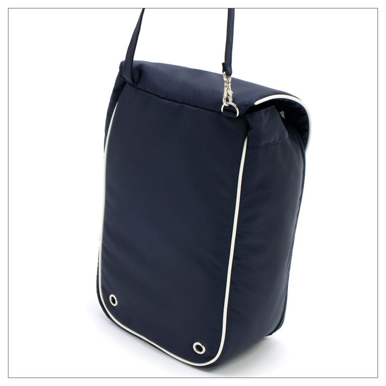 ・フックやヘッドレストなどに引っ掛けて縦置きにしても、フロアに置いて横向きにしても使いやすいフォルムに、パイピングできちんとした上質感と型崩れしにくい機能性をプラス