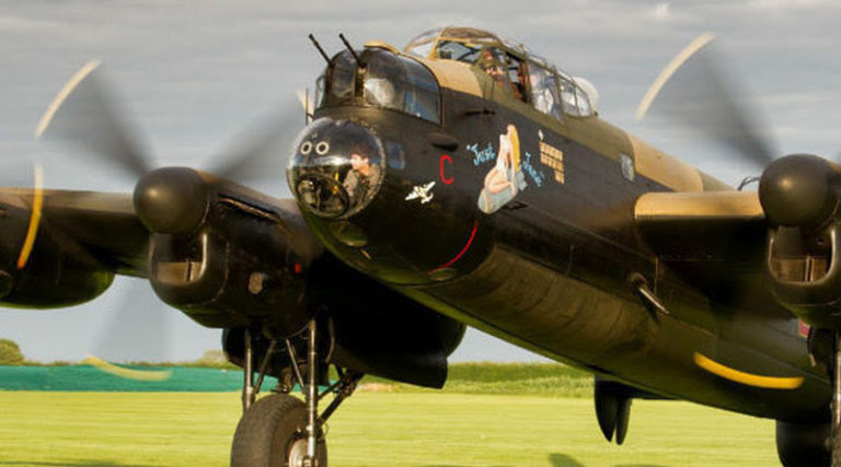 アブロ・ランカスターは、第二次世界大戦において、イギリス空軍が配備運用した大型爆撃機。いくつか存在するアブロ・ランカスターのなかでも、JUST JANEという愛称で「イギリスの秘密兵器」として機体のノーズに爆弾に乗ったピンナップガールが描かれたNX611は、大戦中にイギリス軍がタイガーフォースの一員として日本攻撃に使用する予定だったもののそのまま終戦を迎え、終戦後はフランス海軍航空隊として運用されました。