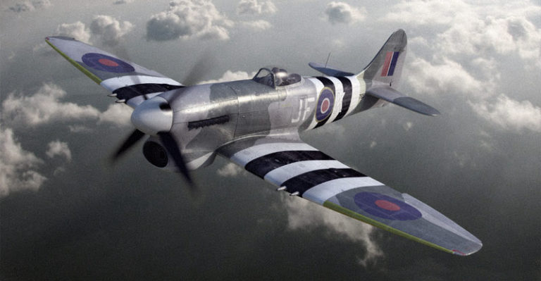 タイフーン戦闘機の発展型として登場したホーカー テンペストは中低高度では最も高速だった戦闘機としてイギリス空軍で活躍。連合軍がノルマンディ上陸を果たした直後、ドイツ軍のV-1や、就役してまもないドイツ空軍の新型機であったMe262ジェット戦闘機を撃墜。最高速を活かした飛行爆弾の迎撃として活躍しました。