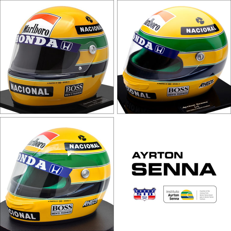 セナのヘルメットペイントを担当していたブラジル・SID MOSCAによる、セナ財団公認の世界限定レプリカヘルメットの3個セット販売のご案内です。