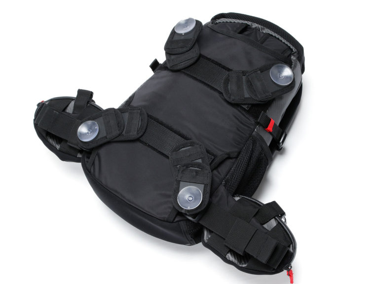 背中面に備えた吸盤によりタンクバッグとしても使用することが可能です。