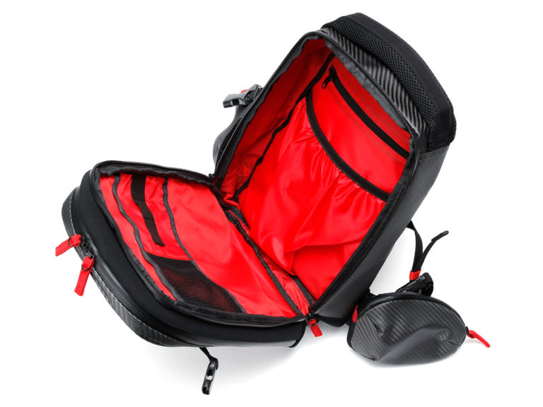 両サイドには着脱可能なポーチを備え、荷物を整理して収納することが可能です。