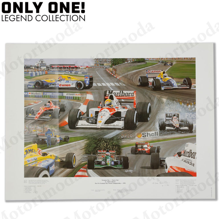 アイテム点数だけで実に100点以上!になるのですが、伝説のF1ドライバー直筆サインの入ったアートポスターや写真、さらに公式プログラムやステッカーなど、どれも当時のメモラビリアアイテムが勢ぞろいしています。また一部の「額装品」アイテムは、西武渋谷・A PIT AUTOBACS SHINONOMEにて実際の商品をご覧いただけます。